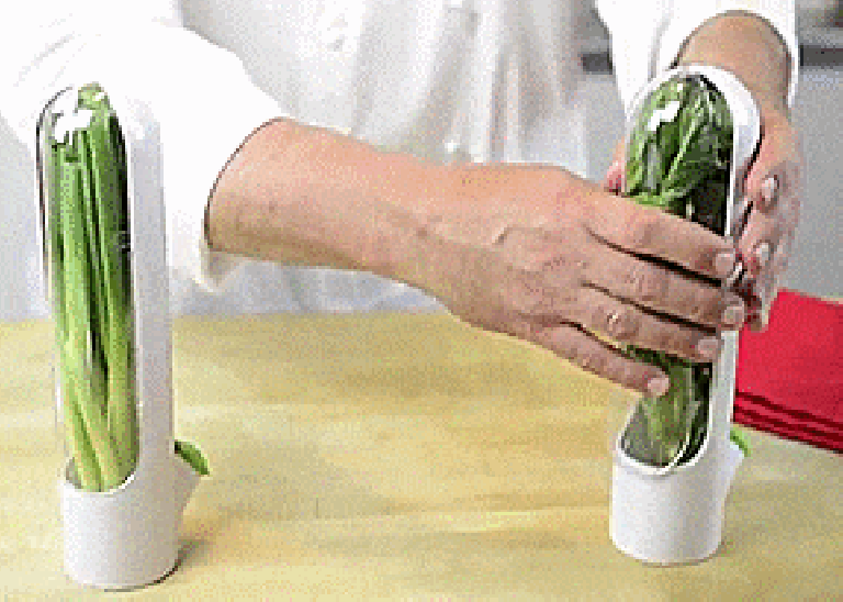 Organización Vertical en el Refrigerador: 📏 Gracias a su forma cilíndrica y delgada, ahorra espacio en el refrigerador. Ya no tengo manojos de hierbas tirados por ahí. ¡Todo vertical y ordenado!
