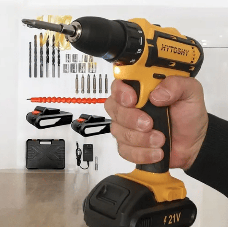 Potente taladro inalámbrico de 21V, perfecto para cualquier proyecto en el hogar o profesional. Incluye un práctico maletín con brocas y puntas de alta calidad para mayor versatilidad y eficiencia en cada tarea. Su diseño ergonómico y ligero te permite trabajar cómodamente y transportarlo con facilidad. Disponible en color negro y azul, su tamaño compacto facilita el uso en espacios reducidos. ¡Haz tus trabajos de perforación y atornillado más rápidos y sencillos con este completo set!
